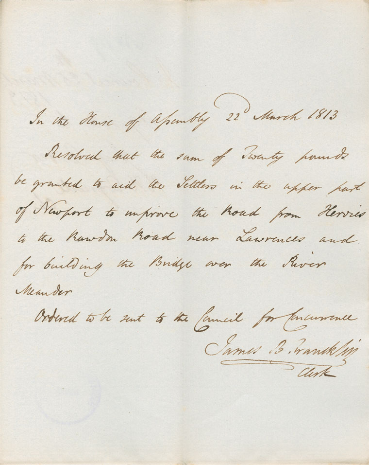 Reference: Nova Scotia House of Assembly Nova Scotia Archives RG 5 Series A volume 19 number 62