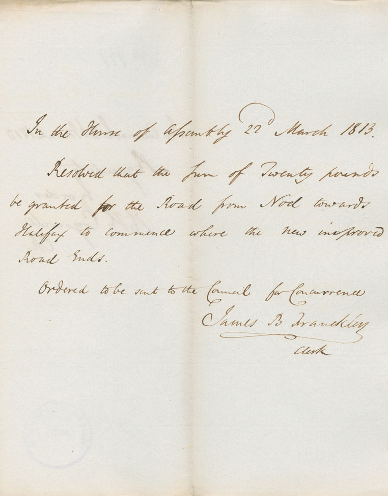 Reference: Nova Scotia House of Assembly Nova Scotia Archives RG 5 Series A volume 19 number 62