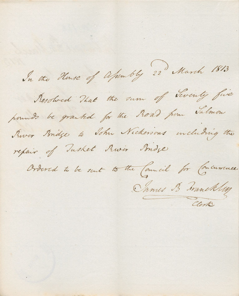 Reference: Nova Scotia House of Assembly Nova Scotia Archives RG 5 Series A volume 19 number 62