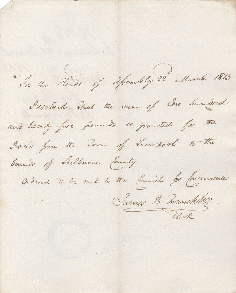 Reference: Nova Scotia House of Assembly Nova Scotia Archives RG 5 Series A volume 19 number 62