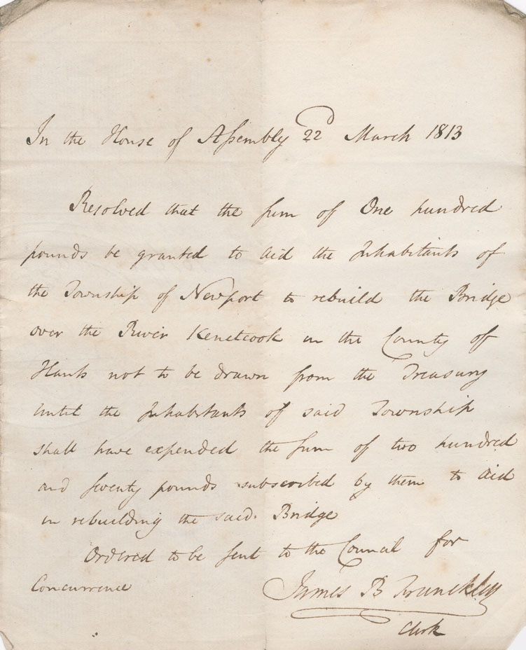 Reference: Nova Scotia House of Assembly Nova Scotia Archives RG 5 Series A volume 19 number 62