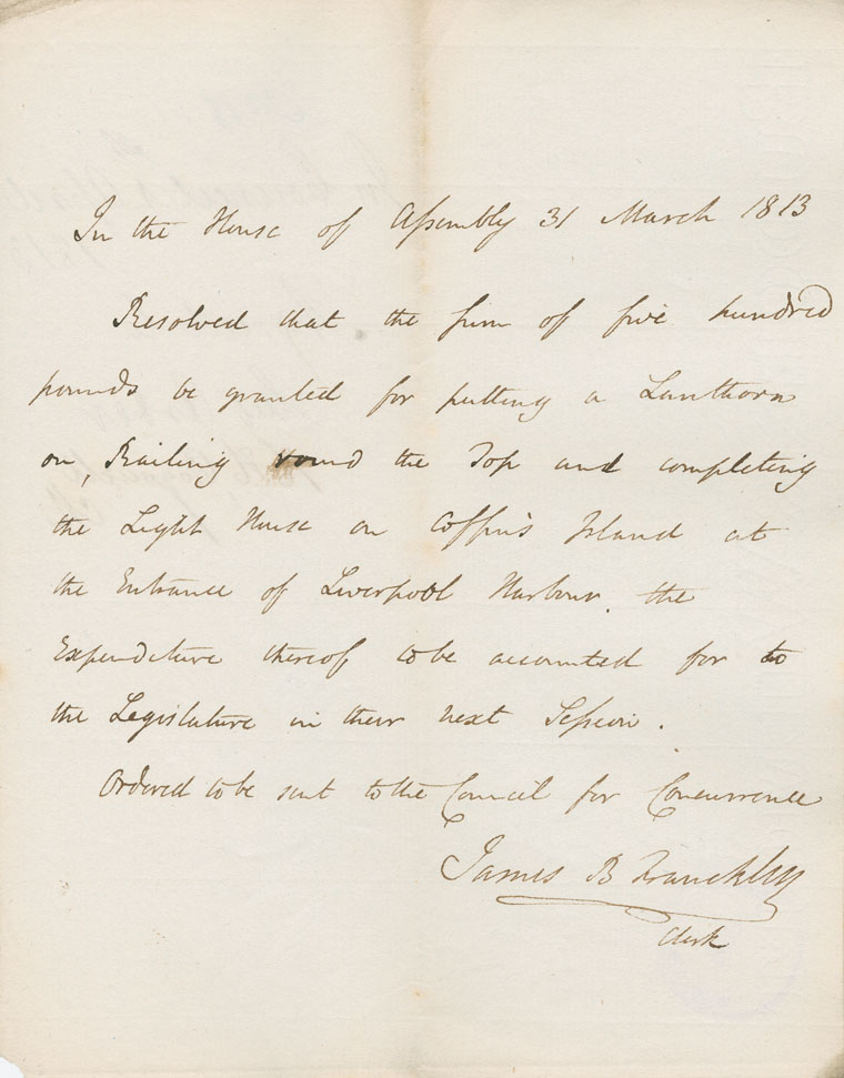 Reference: Nova Scotia House of Assembly Nova Scotia Archives RG 5 Series A volume 19 number 71