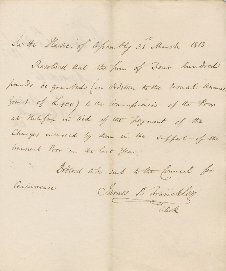 Reference: Nova Scotia House of Assembly Nova Scotia Archives RG 5 Series A volume 19 number 71