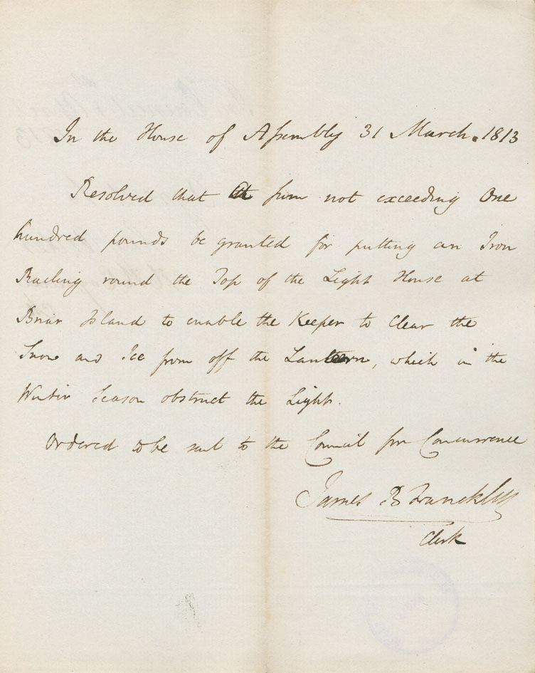 Reference: Nova Scotia House of Assembly Nova Scotia Archives RG 5 Series A volume 19 number 71