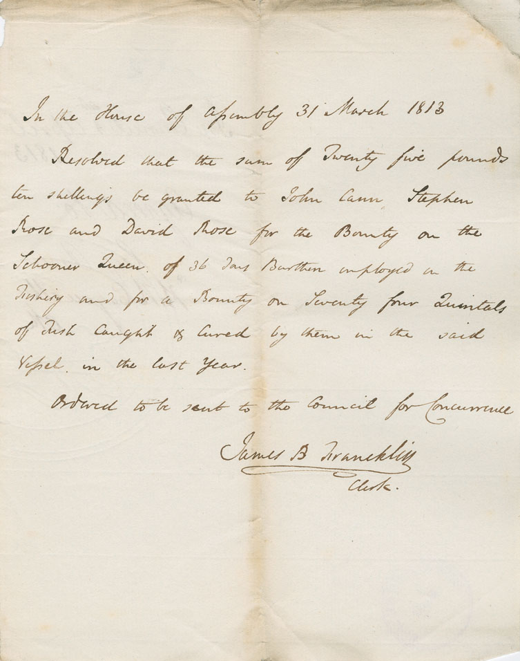 Reference: Nova Scotia House of Assembly Nova Scotia Archives RG 5 Series A volume 19 number 71