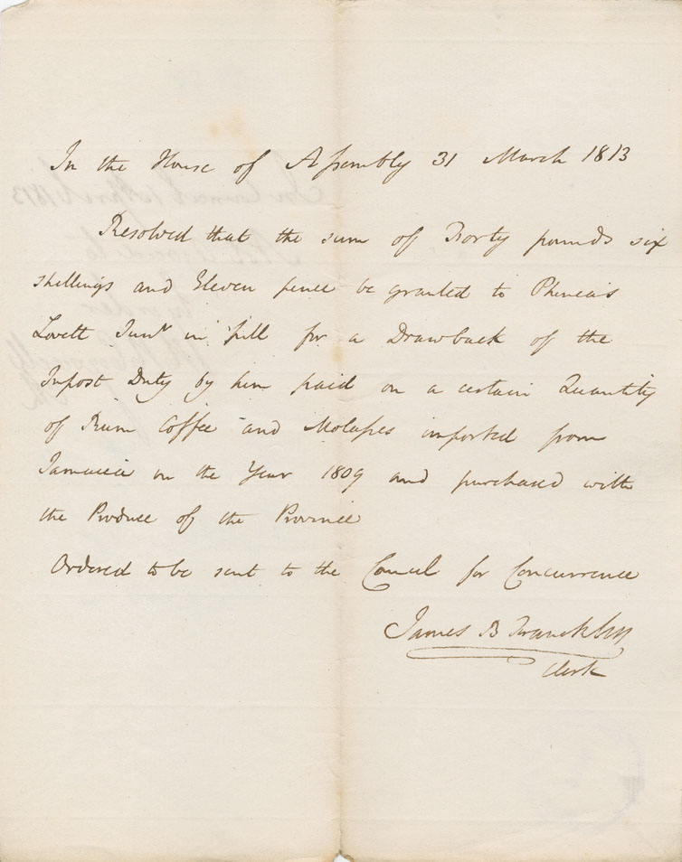 Reference: Nova Scotia House of Assembly Nova Scotia Archives RG 5 Series A volume 19 number 71