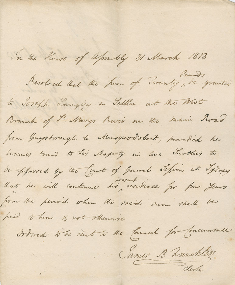 Reference: Nova Scotia House of Assembly Nova Scotia Archives RG 5 Series A volume 19 number 71