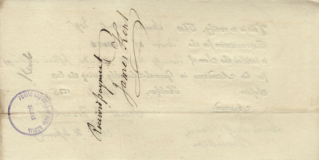 Reference: Nova Scotia House of Assembly Nova Scotia Archives RG 5 Series A volume 21 number 111