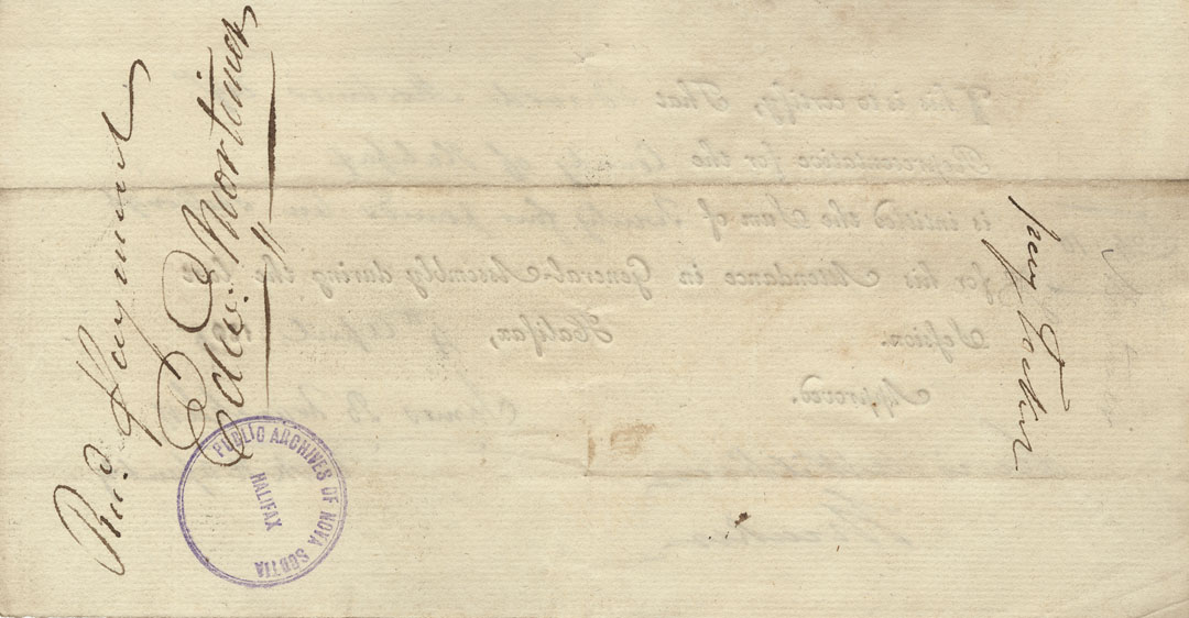 Reference: Nova Scotia House of Assembly Nova Scotia Archives RG 5 Series A volume 21 number 111