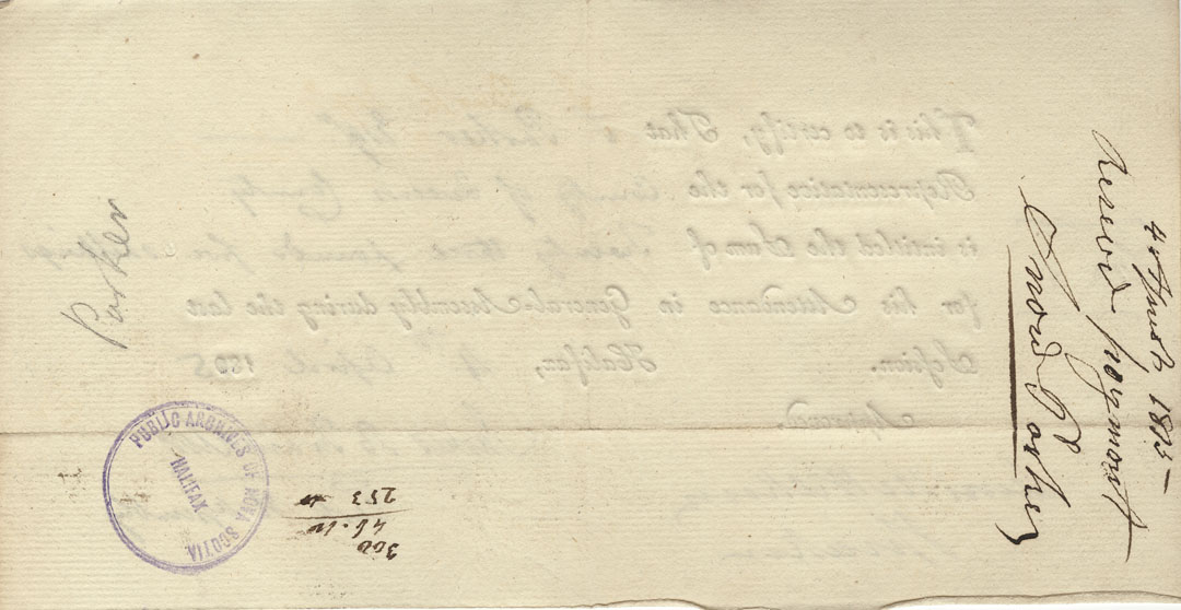 Reference: Nova Scotia House of Assembly Nova Scotia Archives RG 5 Series A volume 21 number 111