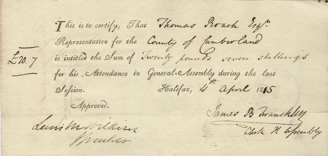 Reference: Nova Scotia House of Assembly Nova Scotia Archives RG 5 Series A volume 21 number 111