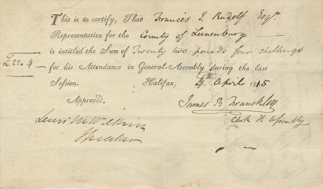 Reference: Nova Scotia House of Assembly Nova Scotia Archives RG 5 Series A volume 21 number 111