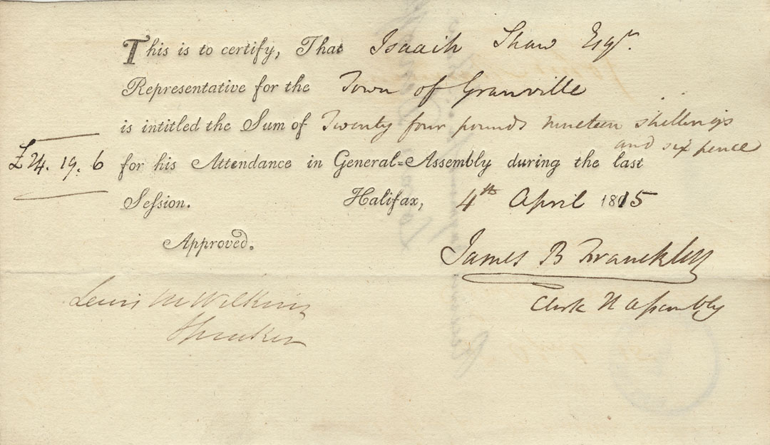 Reference: Nova Scotia House of Assembly Nova Scotia Archives RG 5 Series A volume 21 number 111