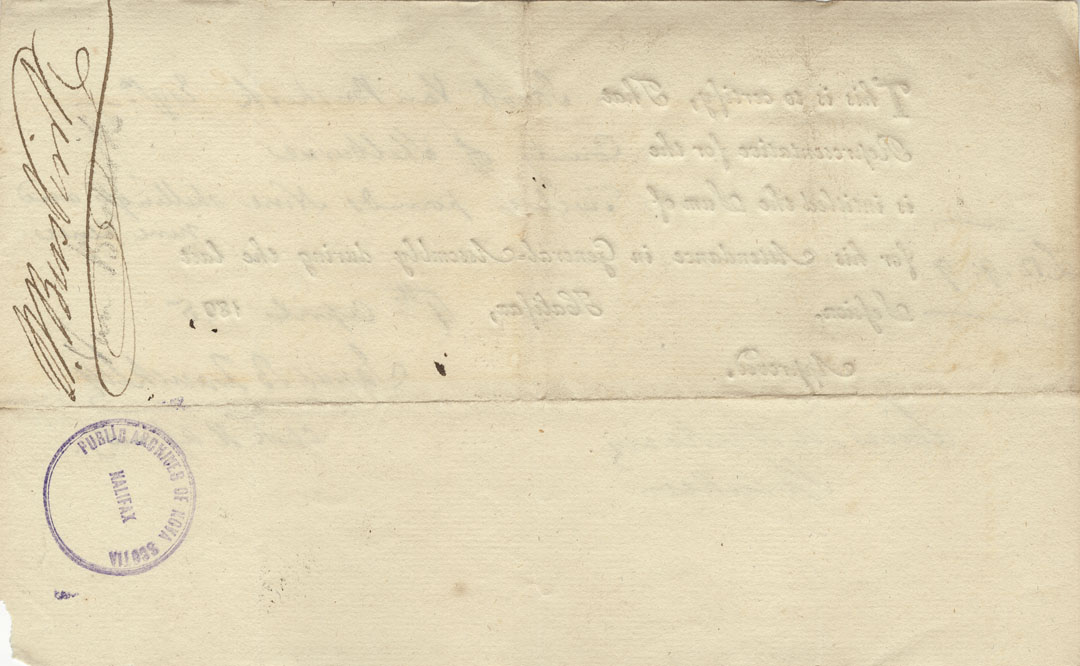 Reference: Nova Scotia House of Assembly Nova Scotia Archives RG 5 Series A volume 21 number 111