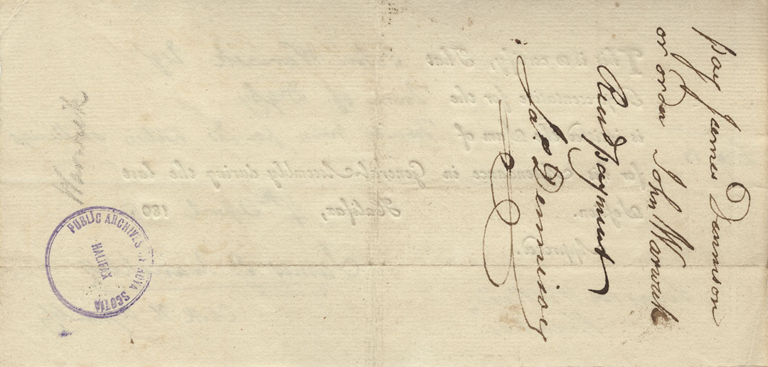 Reference: Nova Scotia House of Assembly Nova Scotia Archives RG 5 Series A volume 21 number 111