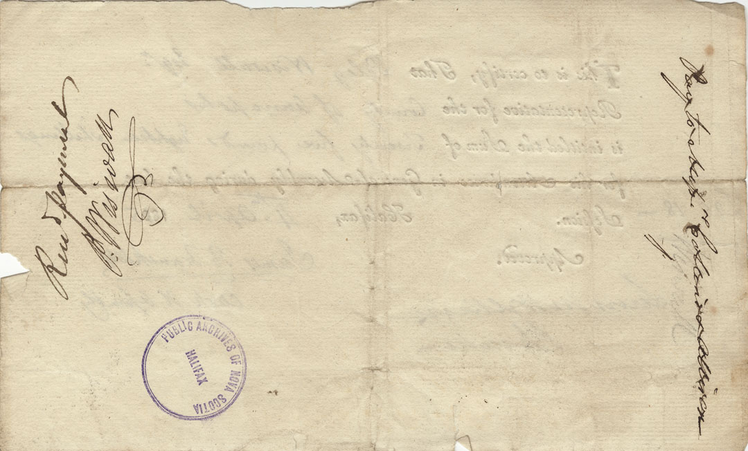Reference: Nova Scotia House of Assembly Nova Scotia Archives RG 5 Series A volume 21 number 111