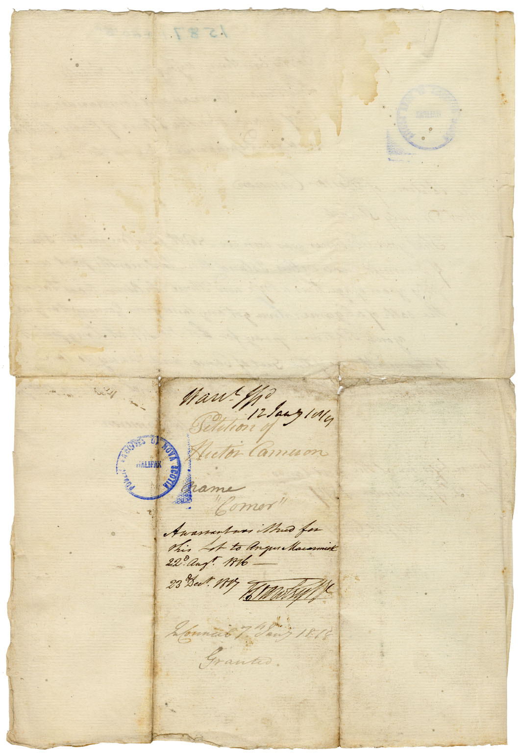 Nova Scotia Commissioner of Crown Lands - Cape Breton land petitions and other material Nova Scotia Archives RG 20 Series B number 1587