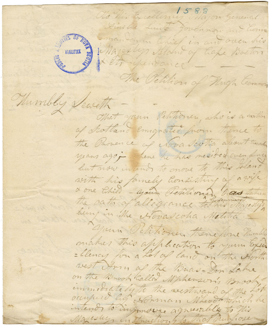 Nova Scotia Commissioner of Crown Lands - Cape Breton land petitions and other material Nova Scotia Archives RG 20 Series B number 1588