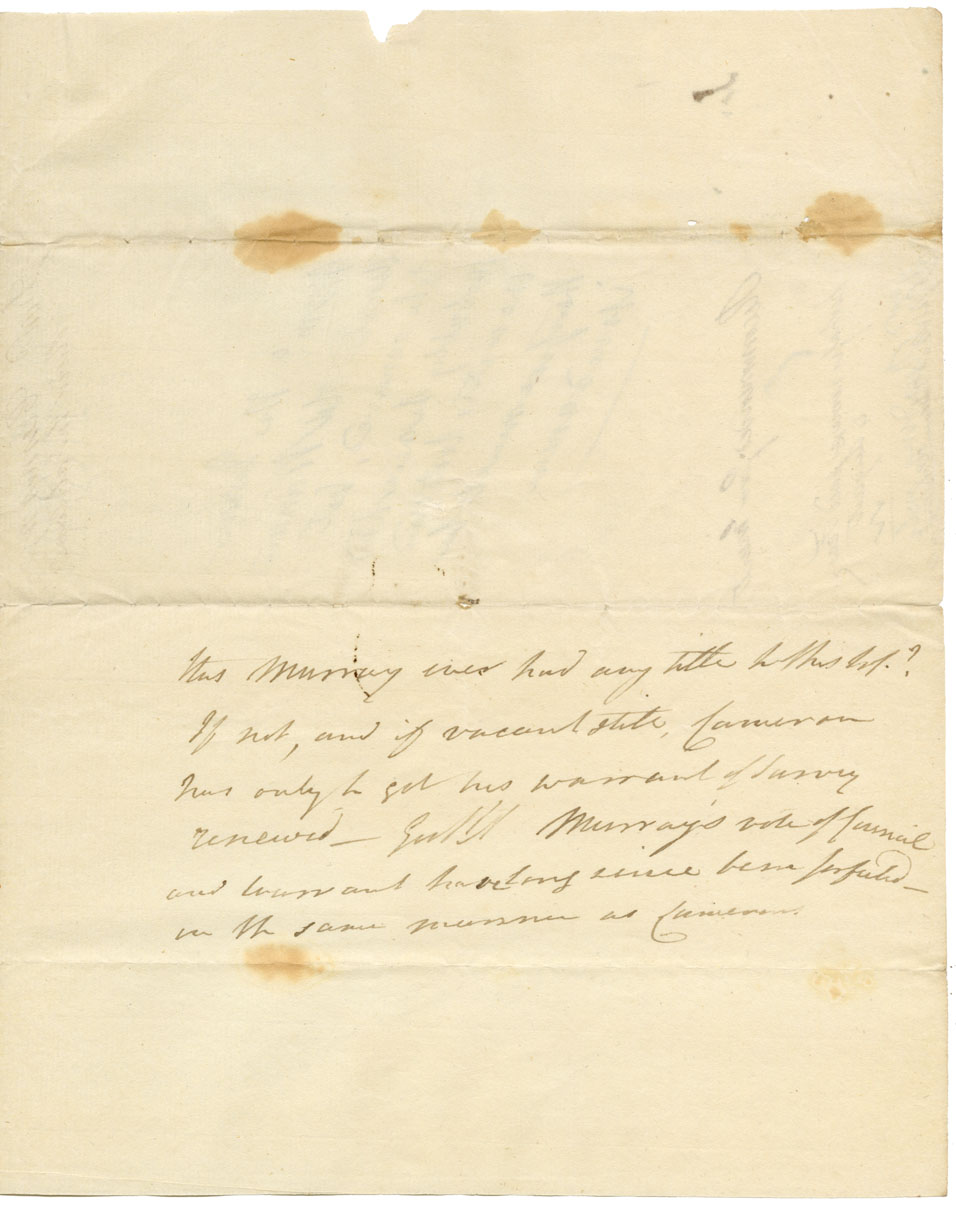 Petition to Ainslie: John Cameron petitions in behalf of his son, Donald, who is on a voyage to Newfoundland. He asks that lot 30, River Inhabitants, for which Donald holds a warrant, be held for him, and not be given to other applicants. Letter to Surveyor, Ward.