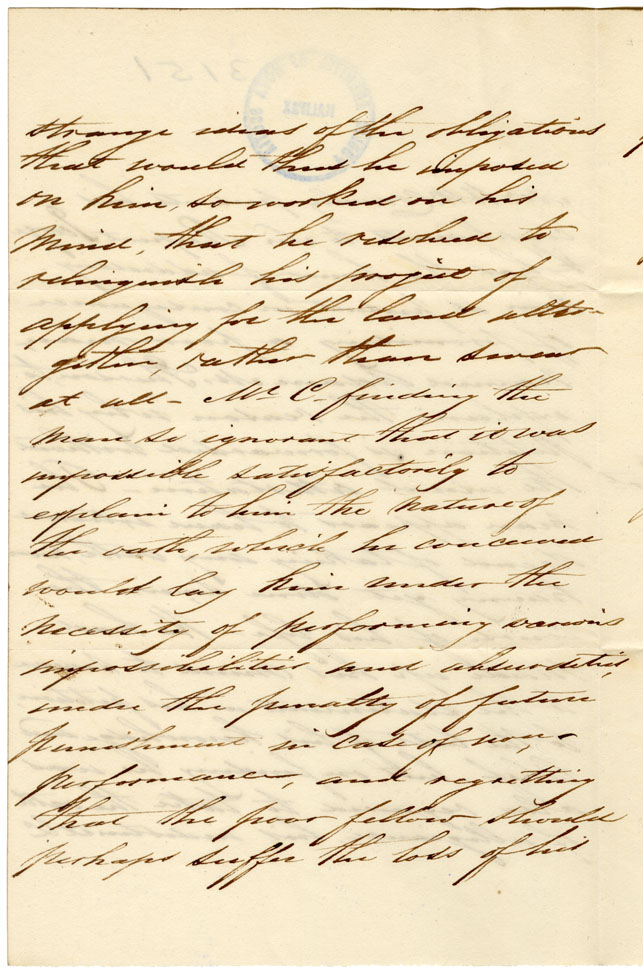 Petition to Kempt: Petitioner is a native of Edinborough, age 37, married, and has three children. He has for many years been settled on a 400 acres farm at the River Inhabitants, for which his father held a crown lease and for which petitioner now asks a grant. The father, Alexander McPherson, died nine years ago and left this lot to the sons, petitioner and his brother David, also 230 acres which had been purchased to the widow, Elizabeth McPherson. A third brother, Alexander, had been provided with land before the father's death, his sisters are also married and settled. David exchanged his share of the land willed him for the mother's lot with the brother Adam, to become his property after the mother's death. The mother has lived with him until the preceding fall when she went to live with David at the Gut of Canso, and petitioner fears that David may, under this circumstance recede from the original bargain. Certificate on behalf of the petitioner, signed by Hector McKinnon, Duncan Cameron, and Malcolm MacDonald. Statement by Crawley recommending the petitioner. Petitioner objected to taking any oath from fear of obligations any oath would impose on him. Note: the two brothers may have a grant in common according to the father's will.