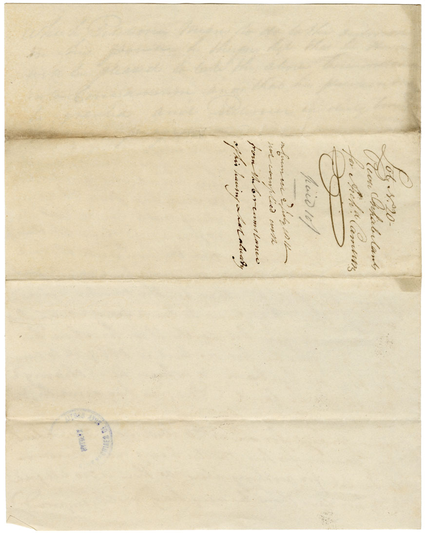 Petition to Nepean: Petitioner, age 42, was born in Argyleshire, Scotland, has for the past four years lived on lot 15, River Inhabitants. This lot is so situated that his pasture land is separated from his tilled land most inconveniently. He asks lot 20 on the west side of the river for pasture. He is married and has five children. Note: not complied with.