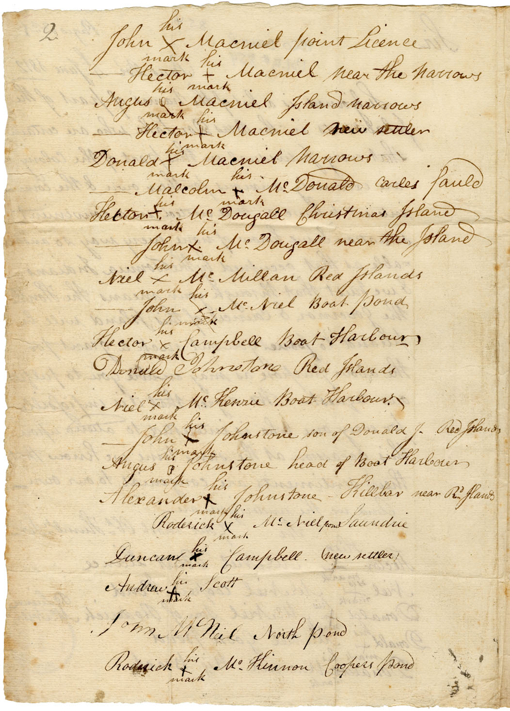 New settlers on the south-west Arm: