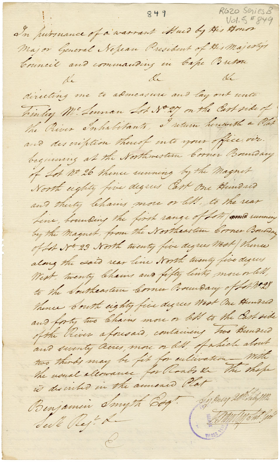 Nova Scotia Commissioner of Crown Lands - Cape Breton land petitions and other material Nova Scotia Archives RG 20 Series B number 849