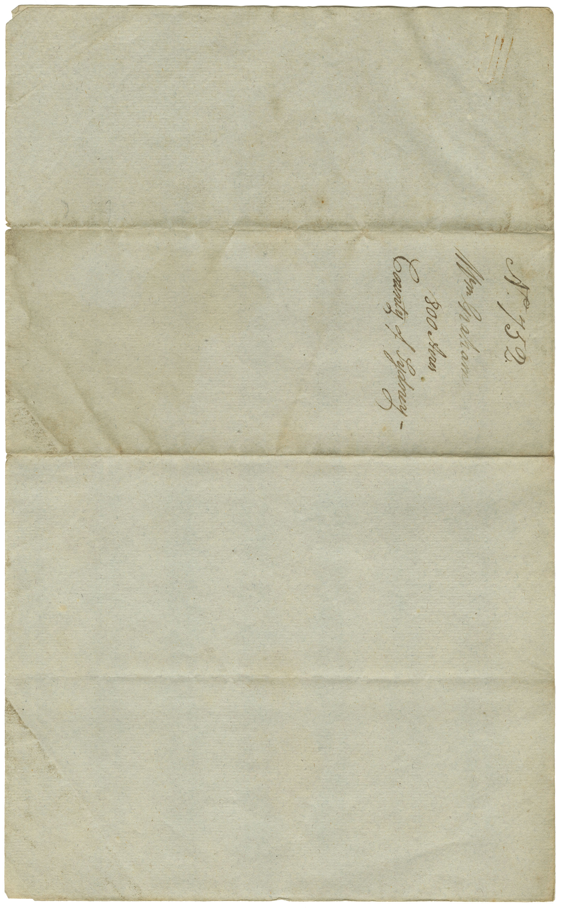 Warrant to Survey. Surveyor's Certificate: 800 acres in the County of Sydney