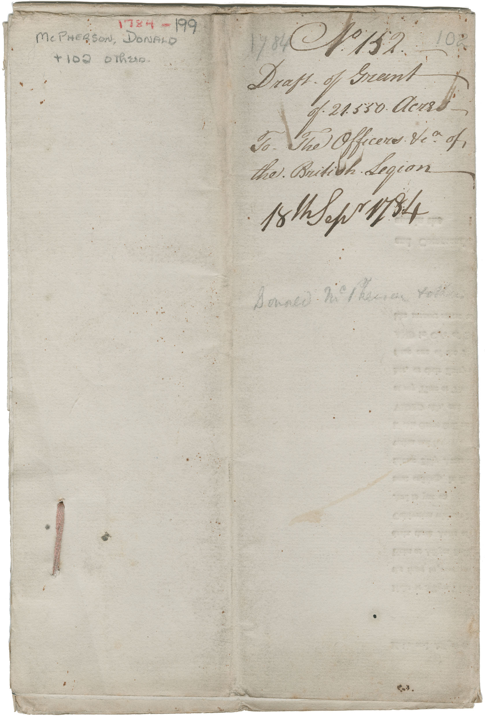 Officers of the British Legion. Granted 21 550 acres at Port Mutton, Guysborough. Includes a list of names and water lots.