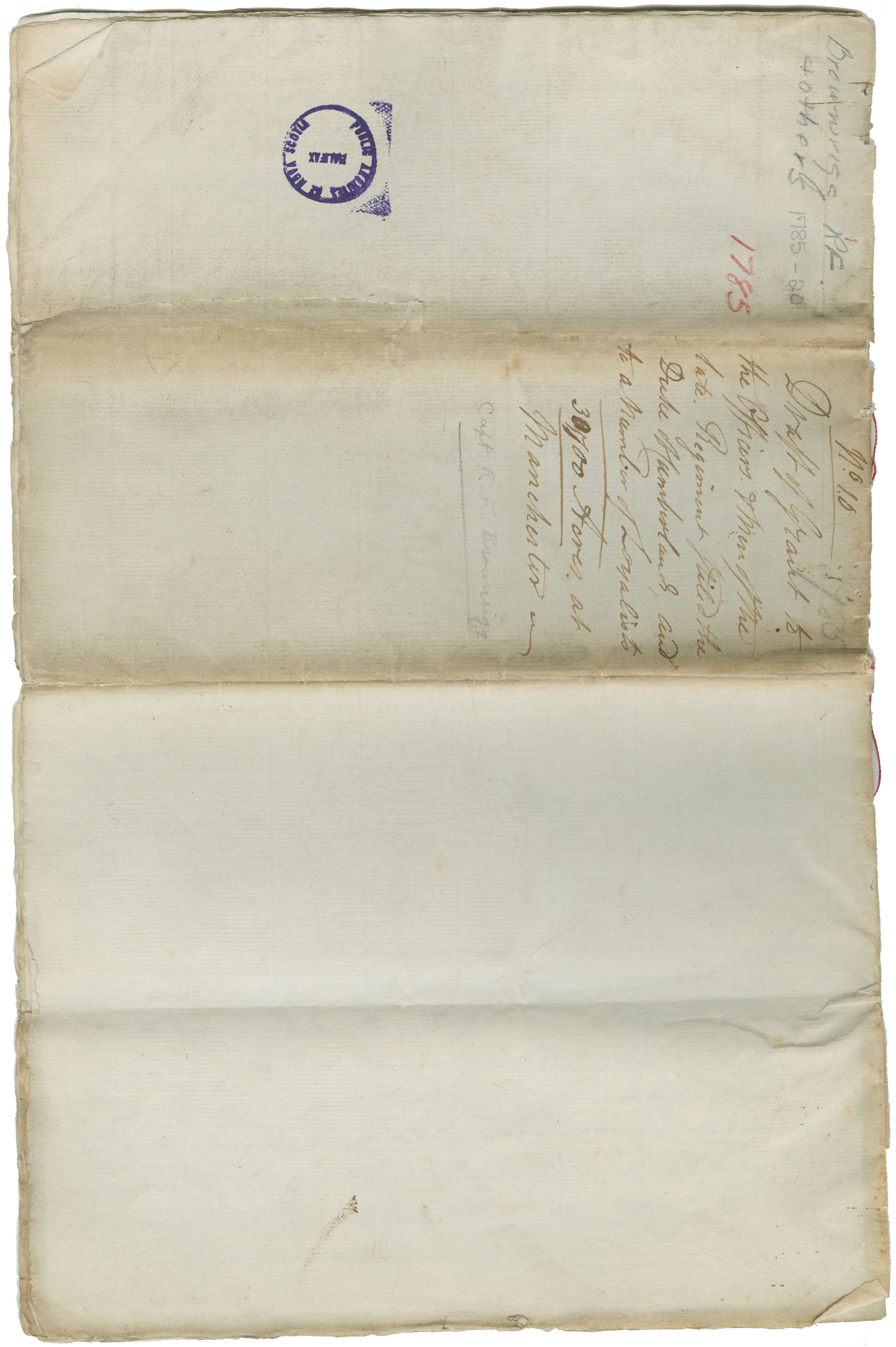 The Duke of Cumberland's Regiment and Loyalists from St. Augustine. Granted 30,700 acres in the Township of Manchester, on Chedabucto Bay (near land granted I. Boyd) to the mouth of a small Riverlet entering the Gut of Canso and from Benjamin Hollowell's Grant on Milford Haven to the sea shore of Chedebucto Bay. Containing in all 50,000 acres, in which the 30,700 acres is included as well as 13,744 acres reserved to the Crown and land allowed for a Town Plot, Glebe, School Lots, Roads and further Grants.