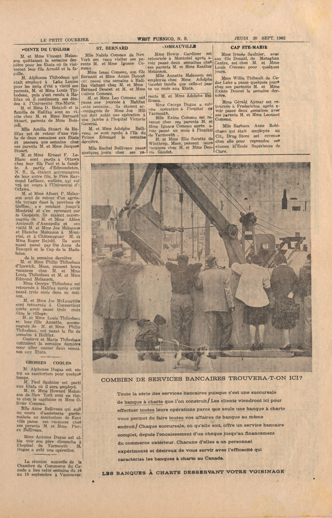 Le Courrier is Nova Scotia's leading French-language newspaper, and the only one with province-wide coverage and distribution. First published by Désiré d'Éon as Le Petit Courrier (Du Sud-Ouest de la Nouvelle-Écosse) on 10 February 1937, it has appeared weekly ever since, informing its readers, defending the interests of Acadians and francophones, and providing a bridge linking all Acadian regions in the province. It offers community news and events, extended articles, advertisements, announcements, photographs and special supplements, all directed towards supporting Nova Scotia's large, dispersed and diversified Acadian population, its businesses, industries, economy, daily activities, schools and higher education, politics, cultural life and heritage. Le Courrier offers an outstanding and unparalleled perspective on 66 years' accumulated history of Nova Scotia's Acadian population, thus enabling exploration of interests, activities, accomplishments, concerns and community issues across a broad swath of the 20th century.