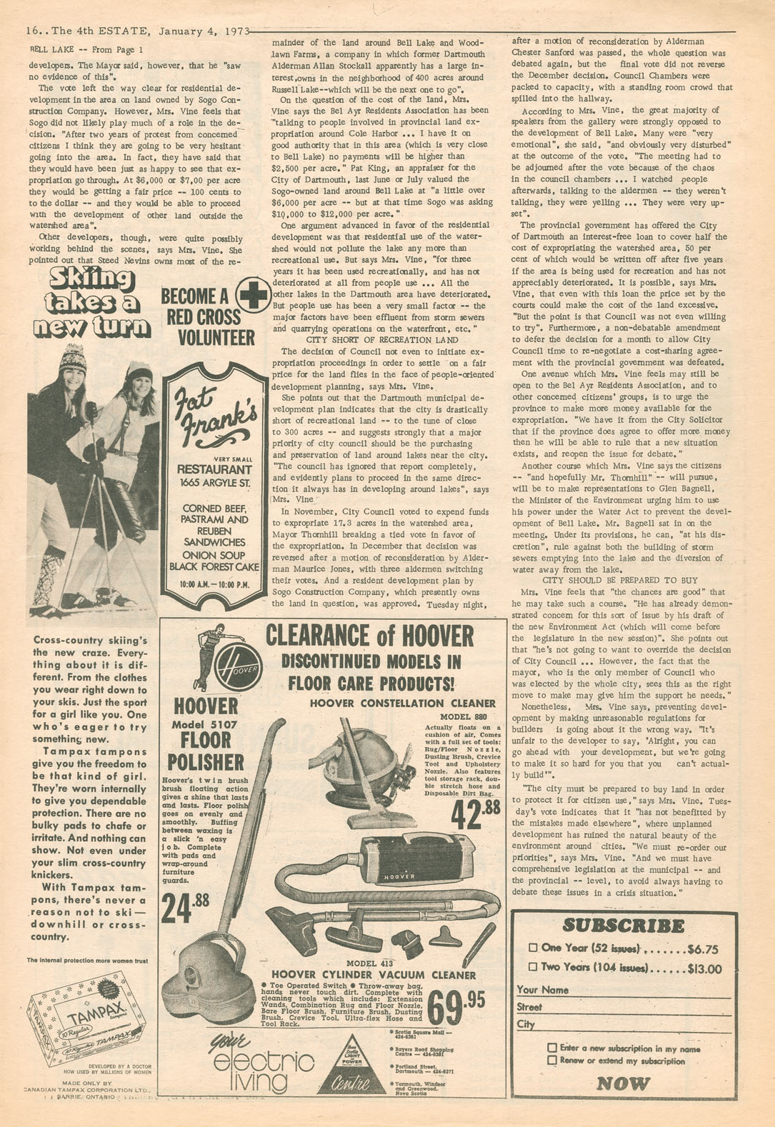 From its first issue on 17 April 1969, The 4th Estate established itself as the independent 'second viewpoint….[and] questioning voice in print in our city and province.' Near the end, in January 1977, publisher Brenda Large wrote, 'The 4th Estate really shouldn't exist at all. All the odds are against it and continue to be against it. But it has survived for eight years due to the work of Nick Fillmore and others who have contributed to the paper and have been loyal readers over the years.' Progressive, radical and provocative, The 4th Estate focused on the issues that mattered in late 20th century Nova Scotia — and which continue to matter to this day.