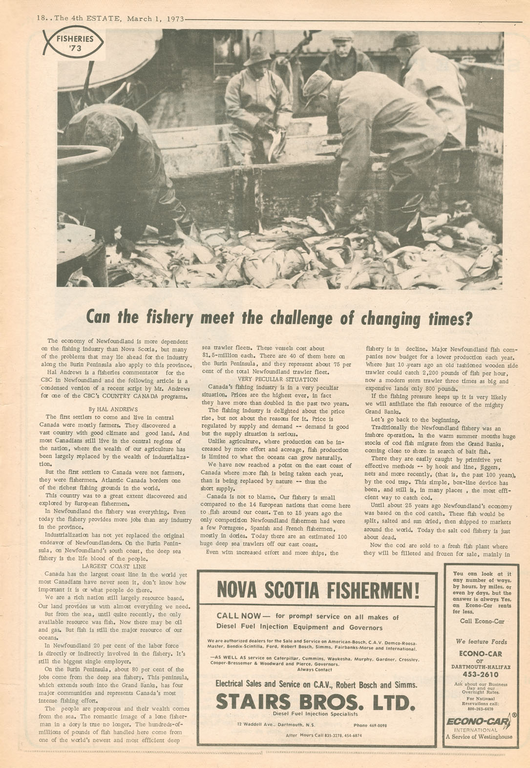 From its first issue on 17 April 1969, The 4th Estate established itself as the independent 'second viewpoint….[and] questioning voice in print in our city and province.' Near the end, in January 1977, publisher Brenda Large wrote, 'The 4th Estate really shouldn't exist at all. All the odds are against it and continue to be against it. But it has survived for eight years due to the work of Nick Fillmore and others who have contributed to the paper and have been loyal readers over the years.' Progressive, radical and provocative, The 4th Estate focused on the issues that mattered in late 20th century Nova Scotia — and which continue to matter to this day.