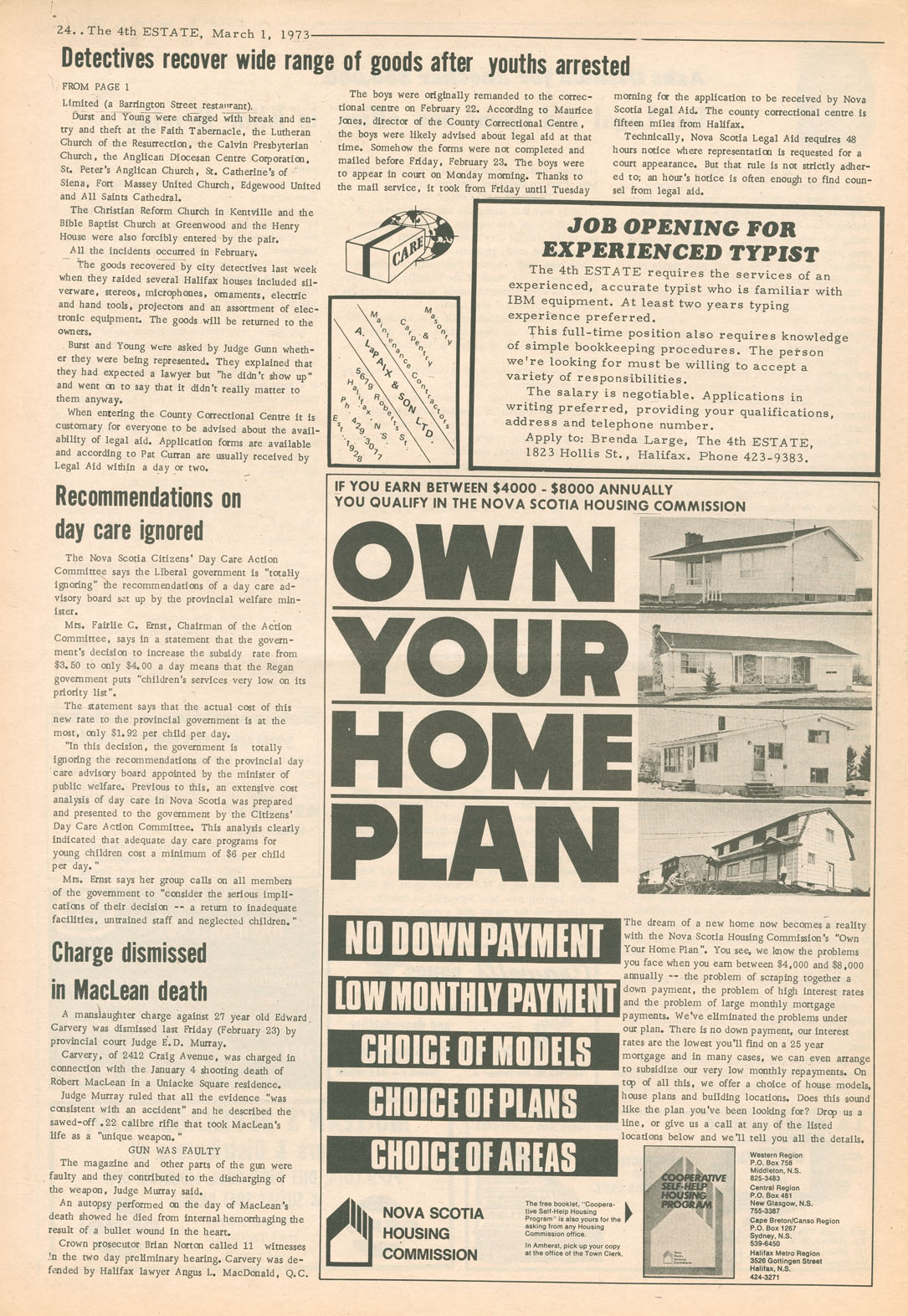 From its first issue on 17 April 1969, The 4th Estate established itself as the independent 'second viewpoint….[and] questioning voice in print in our city and province.' Near the end, in January 1977, publisher Brenda Large wrote, 'The 4th Estate really shouldn't exist at all. All the odds are against it and continue to be against it. But it has survived for eight years due to the work of Nick Fillmore and others who have contributed to the paper and have been loyal readers over the years.' Progressive, radical and provocative, The 4th Estate focused on the issues that mattered in late 20th century Nova Scotia — and which continue to matter to this day.
