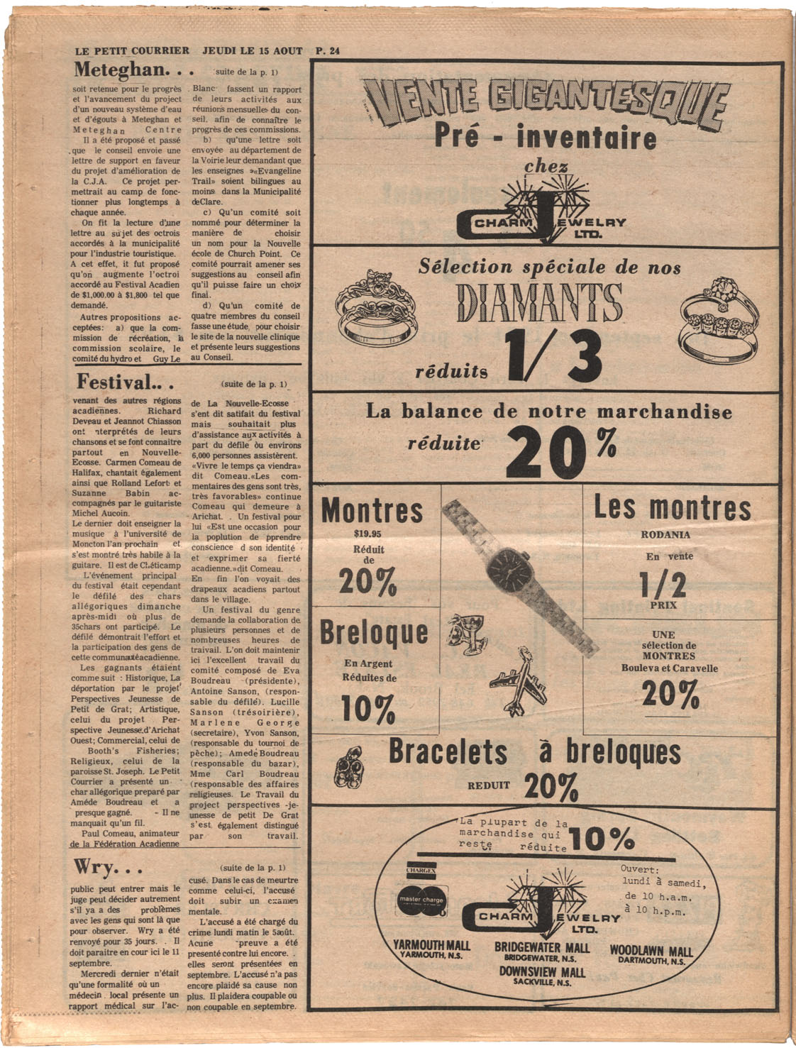 Le Courrier is Nova Scotia's leading French-language newspaper, and the only one with province-wide coverage and distribution. First published by Désiré d'Éon as Le Petit Courrier (Du Sud-Ouest de la Nouvelle-Écosse) on 10 February 1937, it has appeared weekly ever since, informing its readers, defending the interests of Acadians and francophones, and providing a bridge linking all Acadian regions in the province. It offers community news and events, extended articles, advertisements, announcements, photographs and special supplements, all directed towards supporting Nova Scotia's large, dispersed and diversified Acadian population, its businesses, industries, economy, daily activities, schools and higher education, politics, cultural life and heritage. Le Courrier offers an outstanding and unparalleled perspective on 66 years' accumulated history of Nova Scotia's Acadian population, thus enabling exploration of interests, activities, accomplishments, concerns and community issues across a broad swath of the 20th century.