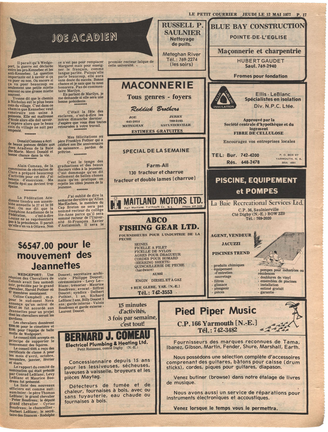 Le Courrier is Nova Scotia's leading French-language newspaper, and the only one with province-wide coverage and distribution. First published by Désiré d'Éon as Le Petit Courrier (Du Sud-Ouest de la Nouvelle-Écosse) on 10 February 1937, it has appeared weekly ever since, informing its readers, defending the interests of Acadians and francophones, and providing a bridge linking all Acadian regions in the province. It offers community news and events, extended articles, advertisements, announcements, photographs and special supplements, all directed towards supporting Nova Scotia's large, dispersed and diversified Acadian population, its businesses, industries, economy, daily activities, schools and higher education, politics, cultural life and heritage. Le Courrier offers an outstanding and unparalleled perspective on 66 years' accumulated history of Nova Scotia's Acadian population, thus enabling exploration of interests, activities, accomplishments, concerns and community issues across a broad swath of the 20th century.