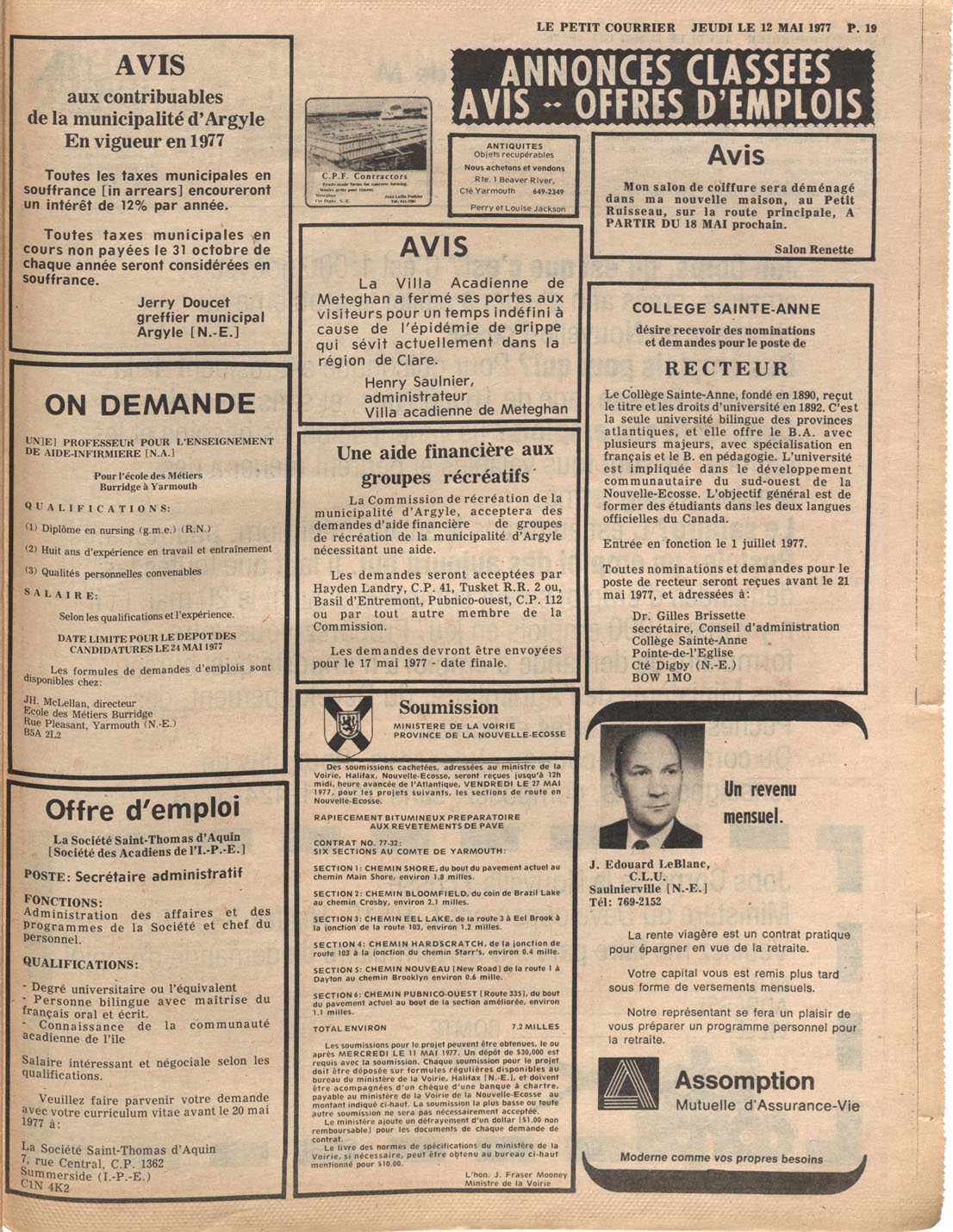 Le Courrier is Nova Scotia's leading French-language newspaper, and the only one with province-wide coverage and distribution. First published by Désiré d'Éon as Le Petit Courrier (Du Sud-Ouest de la Nouvelle-Écosse) on 10 February 1937, it has appeared weekly ever since, informing its readers, defending the interests of Acadians and francophones, and providing a bridge linking all Acadian regions in the province. It offers community news and events, extended articles, advertisements, announcements, photographs and special supplements, all directed towards supporting Nova Scotia's large, dispersed and diversified Acadian population, its businesses, industries, economy, daily activities, schools and higher education, politics, cultural life and heritage. Le Courrier offers an outstanding and unparalleled perspective on 66 years' accumulated history of Nova Scotia's Acadian population, thus enabling exploration of interests, activities, accomplishments, concerns and community issues across a broad swath of the 20th century.