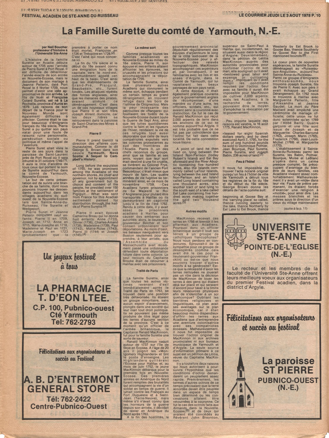 Le Courrier is Nova Scotia's leading French-language newspaper, and the only one with province-wide coverage and distribution. First published by Désiré d'Éon as Le Petit Courrier (Du Sud-Ouest de la Nouvelle-Écosse) on 10 February 1937, it has appeared weekly ever since, informing its readers, defending the interests of Acadians and francophones, and providing a bridge linking all Acadian regions in the province. It offers community news and events, extended articles, advertisements, announcements, photographs and special supplements, all directed towards supporting Nova Scotia's large, dispersed and diversified Acadian population, its businesses, industries, economy, daily activities, schools and higher education, politics, cultural life and heritage. Le Courrier offers an outstanding and unparalleled perspective on 66 years' accumulated history of Nova Scotia's Acadian population, thus enabling exploration of interests, activities, accomplishments, concerns and community issues across a broad swath of the 20th century.