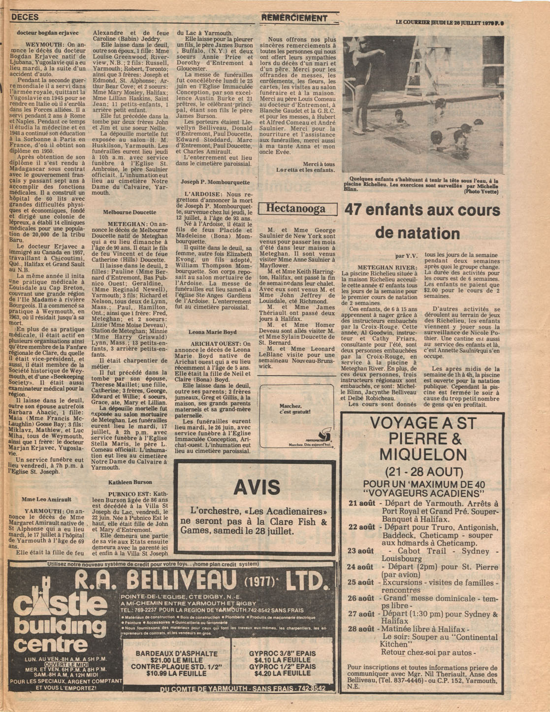 Le Courrier is Nova Scotia's leading French-language newspaper, and the only one with province-wide coverage and distribution. First published by Désiré d'Éon as Le Petit Courrier (Du Sud-Ouest de la Nouvelle-Écosse) on 10 February 1937, it has appeared weekly ever since, informing its readers, defending the interests of Acadians and francophones, and providing a bridge linking all Acadian regions in the province. It offers community news and events, extended articles, advertisements, announcements, photographs and special supplements, all directed towards supporting Nova Scotia's large, dispersed and diversified Acadian population, its businesses, industries, economy, daily activities, schools and higher education, politics, cultural life and heritage. Le Courrier offers an outstanding and unparalleled perspective on 66 years' accumulated history of Nova Scotia's Acadian population, thus enabling exploration of interests, activities, accomplishments, concerns and community issues across a broad swath of the 20th century.
