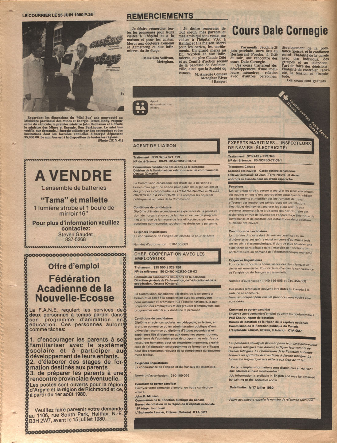 Le Courrier is Nova Scotia's leading French-language newspaper, and the only one with province-wide coverage and distribution. First published by Désiré d'Éon as Le Petit Courrier (Du Sud-Ouest de la Nouvelle-Écosse) on 10 February 1937, it has appeared weekly ever since, informing its readers, defending the interests of Acadians and francophones, and providing a bridge linking all Acadian regions in the province. It offers community news and events, extended articles, advertisements, announcements, photographs and special supplements, all directed towards supporting Nova Scotia's large, dispersed and diversified Acadian population, its businesses, industries, economy, daily activities, schools and higher education, politics, cultural life and heritage. Le Courrier offers an outstanding and unparalleled perspective on 66 years' accumulated history of Nova Scotia's Acadian population, thus enabling exploration of interests, activities, accomplishments, concerns and community issues across a broad swath of the 20th century.