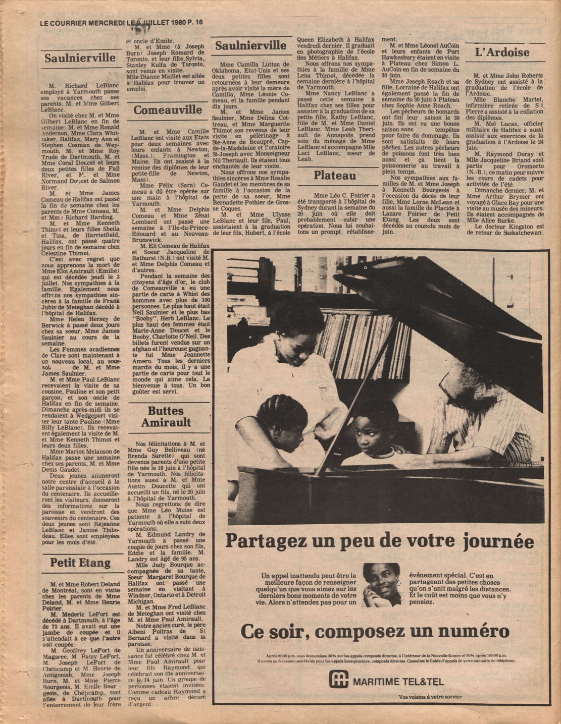 Le Courrier is Nova Scotia's leading French-language newspaper, and the only one with province-wide coverage and distribution. First published by Désiré d'Éon as Le Petit Courrier (Du Sud-Ouest de la Nouvelle-Écosse) on 10 February 1937, it has appeared weekly ever since, informing its readers, defending the interests of Acadians and francophones, and providing a bridge linking all Acadian regions in the province. It offers community news and events, extended articles, advertisements, announcements, photographs and special supplements, all directed towards supporting Nova Scotia's large, dispersed and diversified Acadian population, its businesses, industries, economy, daily activities, schools and higher education, politics, cultural life and heritage. Le Courrier offers an outstanding and unparalleled perspective on 66 years' accumulated history of Nova Scotia's Acadian population, thus enabling exploration of interests, activities, accomplishments, concerns and community issues across a broad swath of the 20th century.