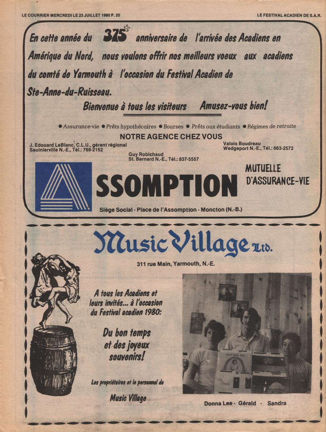 Le Courrier is Nova Scotia's leading French-language newspaper, and the only one with province-wide coverage and distribution. First published by Désiré d'Éon as Le Petit Courrier (Du Sud-Ouest de la Nouvelle-Écosse) on 10 February 1937, it has appeared weekly ever since, informing its readers, defending the interests of Acadians and francophones, and providing a bridge linking all Acadian regions in the province. It offers community news and events, extended articles, advertisements, announcements, photographs and special supplements, all directed towards supporting Nova Scotia's large, dispersed and diversified Acadian population, its businesses, industries, economy, daily activities, schools and higher education, politics, cultural life and heritage. Le Courrier offers an outstanding and unparalleled perspective on 66 years' accumulated history of Nova Scotia's Acadian population, thus enabling exploration of interests, activities, accomplishments, concerns and community issues across a broad swath of the 20th century.