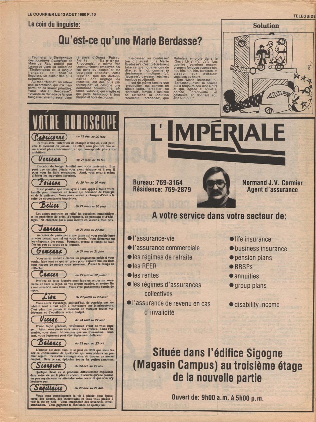 Le Courrier is Nova Scotia's leading French-language newspaper, and the only one with province-wide coverage and distribution. First published by Désiré d'Éon as Le Petit Courrier (Du Sud-Ouest de la Nouvelle-Écosse) on 10 February 1937, it has appeared weekly ever since, informing its readers, defending the interests of Acadians and francophones, and providing a bridge linking all Acadian regions in the province. It offers community news and events, extended articles, advertisements, announcements, photographs and special supplements, all directed towards supporting Nova Scotia's large, dispersed and diversified Acadian population, its businesses, industries, economy, daily activities, schools and higher education, politics, cultural life and heritage. Le Courrier offers an outstanding and unparalleled perspective on 66 years' accumulated history of Nova Scotia's Acadian population, thus enabling exploration of interests, activities, accomplishments, concerns and community issues across a broad swath of the 20th century.