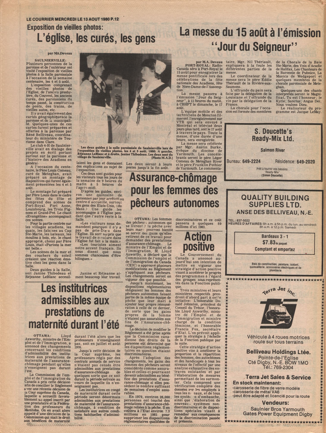 Le Courrier is Nova Scotia's leading French-language newspaper, and the only one with province-wide coverage and distribution. First published by Désiré d'Éon as Le Petit Courrier (Du Sud-Ouest de la Nouvelle-Écosse) on 10 February 1937, it has appeared weekly ever since, informing its readers, defending the interests of Acadians and francophones, and providing a bridge linking all Acadian regions in the province. It offers community news and events, extended articles, advertisements, announcements, photographs and special supplements, all directed towards supporting Nova Scotia's large, dispersed and diversified Acadian population, its businesses, industries, economy, daily activities, schools and higher education, politics, cultural life and heritage. Le Courrier offers an outstanding and unparalleled perspective on 66 years' accumulated history of Nova Scotia's Acadian population, thus enabling exploration of interests, activities, accomplishments, concerns and community issues across a broad swath of the 20th century.