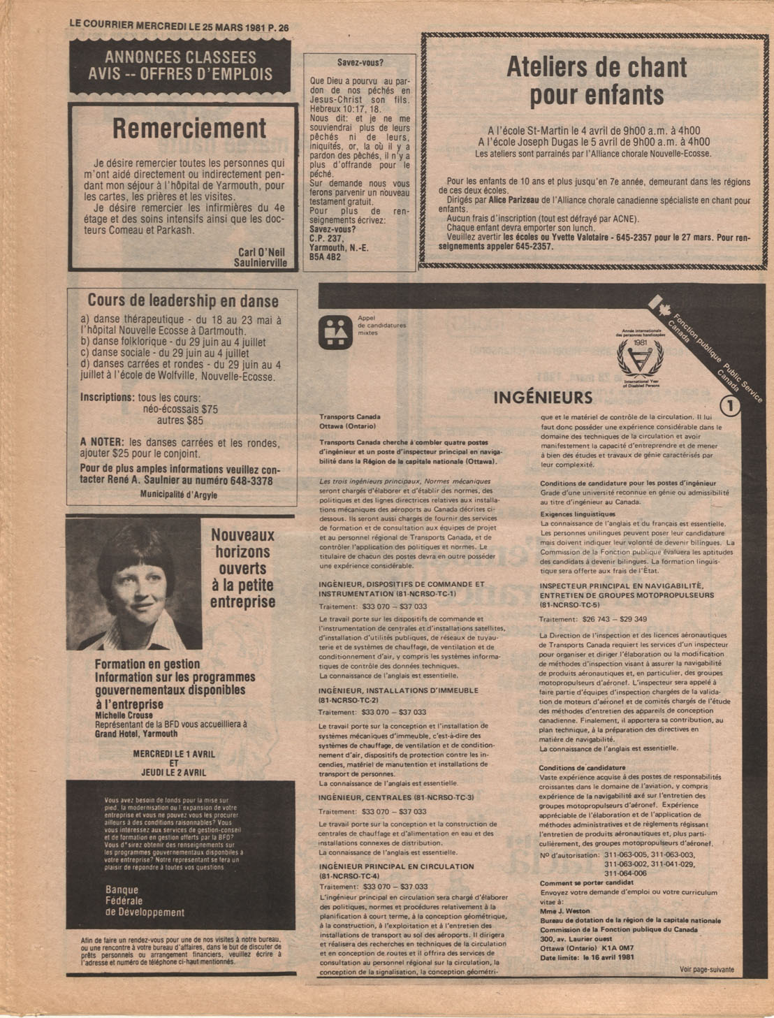 Le Courrier is Nova Scotia's leading French-language newspaper, and the only one with province-wide coverage and distribution. First published by Désiré d'Éon as Le Petit Courrier (Du Sud-Ouest de la Nouvelle-Écosse) on 10 February 1937, it has appeared weekly ever since, informing its readers, defending the interests of Acadians and francophones, and providing a bridge linking all Acadian regions in the province. It offers community news and events, extended articles, advertisements, announcements, photographs and special supplements, all directed towards supporting Nova Scotia's large, dispersed and diversified Acadian population, its businesses, industries, economy, daily activities, schools and higher education, politics, cultural life and heritage. Le Courrier offers an outstanding and unparalleled perspective on 66 years' accumulated history of Nova Scotia's Acadian population, thus enabling exploration of interests, activities, accomplishments, concerns and community issues across a broad swath of the 20th century.