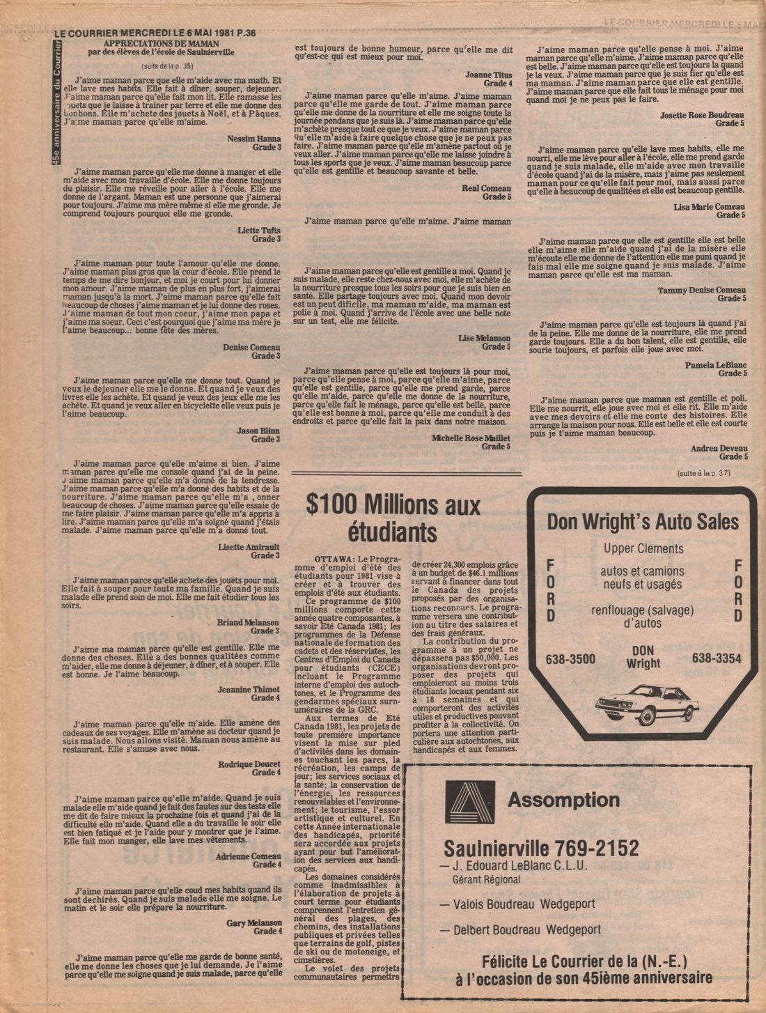Le Courrier is Nova Scotia's leading French-language newspaper, and the only one with province-wide coverage and distribution. First published by Désiré d'Éon as Le Petit Courrier (Du Sud-Ouest de la Nouvelle-Écosse) on 10 February 1937, it has appeared weekly ever since, informing its readers, defending the interests of Acadians and francophones, and providing a bridge linking all Acadian regions in the province. It offers community news and events, extended articles, advertisements, announcements, photographs and special supplements, all directed towards supporting Nova Scotia's large, dispersed and diversified Acadian population, its businesses, industries, economy, daily activities, schools and higher education, politics, cultural life and heritage. Le Courrier offers an outstanding and unparalleled perspective on 66 years' accumulated history of Nova Scotia's Acadian population, thus enabling exploration of interests, activities, accomplishments, concerns and community issues across a broad swath of the 20th century.