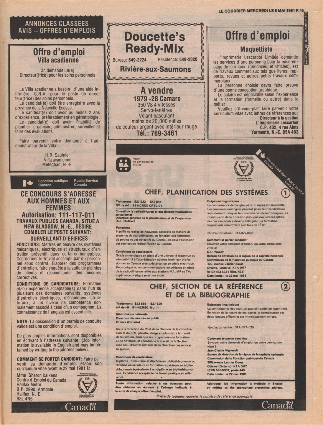 Le Courrier is Nova Scotia's leading French-language newspaper, and the only one with province-wide coverage and distribution. First published by Désiré d'Éon as Le Petit Courrier (Du Sud-Ouest de la Nouvelle-Écosse) on 10 February 1937, it has appeared weekly ever since, informing its readers, defending the interests of Acadians and francophones, and providing a bridge linking all Acadian regions in the province. It offers community news and events, extended articles, advertisements, announcements, photographs and special supplements, all directed towards supporting Nova Scotia's large, dispersed and diversified Acadian population, its businesses, industries, economy, daily activities, schools and higher education, politics, cultural life and heritage. Le Courrier offers an outstanding and unparalleled perspective on 66 years' accumulated history of Nova Scotia's Acadian population, thus enabling exploration of interests, activities, accomplishments, concerns and community issues across a broad swath of the 20th century.