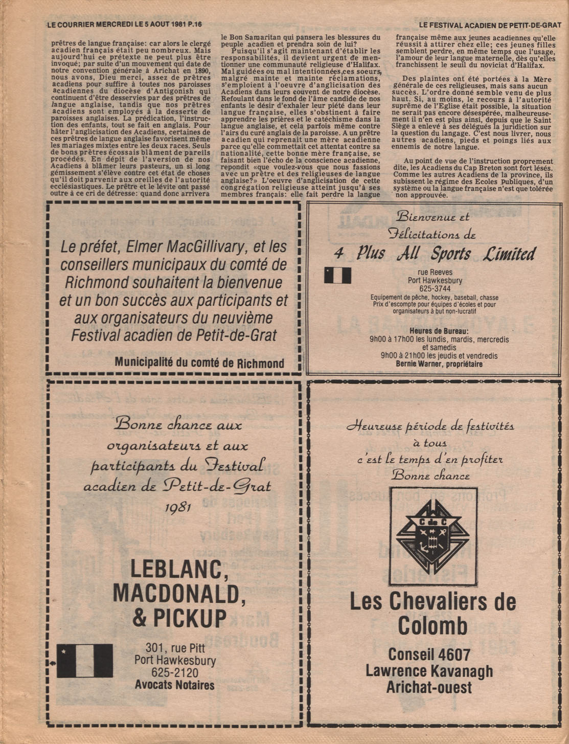Le Courrier is Nova Scotia's leading French-language newspaper, and the only one with province-wide coverage and distribution. First published by Désiré d'Éon as Le Petit Courrier (Du Sud-Ouest de la Nouvelle-Écosse) on 10 February 1937, it has appeared weekly ever since, informing its readers, defending the interests of Acadians and francophones, and providing a bridge linking all Acadian regions in the province. It offers community news and events, extended articles, advertisements, announcements, photographs and special supplements, all directed towards supporting Nova Scotia's large, dispersed and diversified Acadian population, its businesses, industries, economy, daily activities, schools and higher education, politics, cultural life and heritage. Le Courrier offers an outstanding and unparalleled perspective on 66 years' accumulated history of Nova Scotia's Acadian population, thus enabling exploration of interests, activities, accomplishments, concerns and community issues across a broad swath of the 20th century.