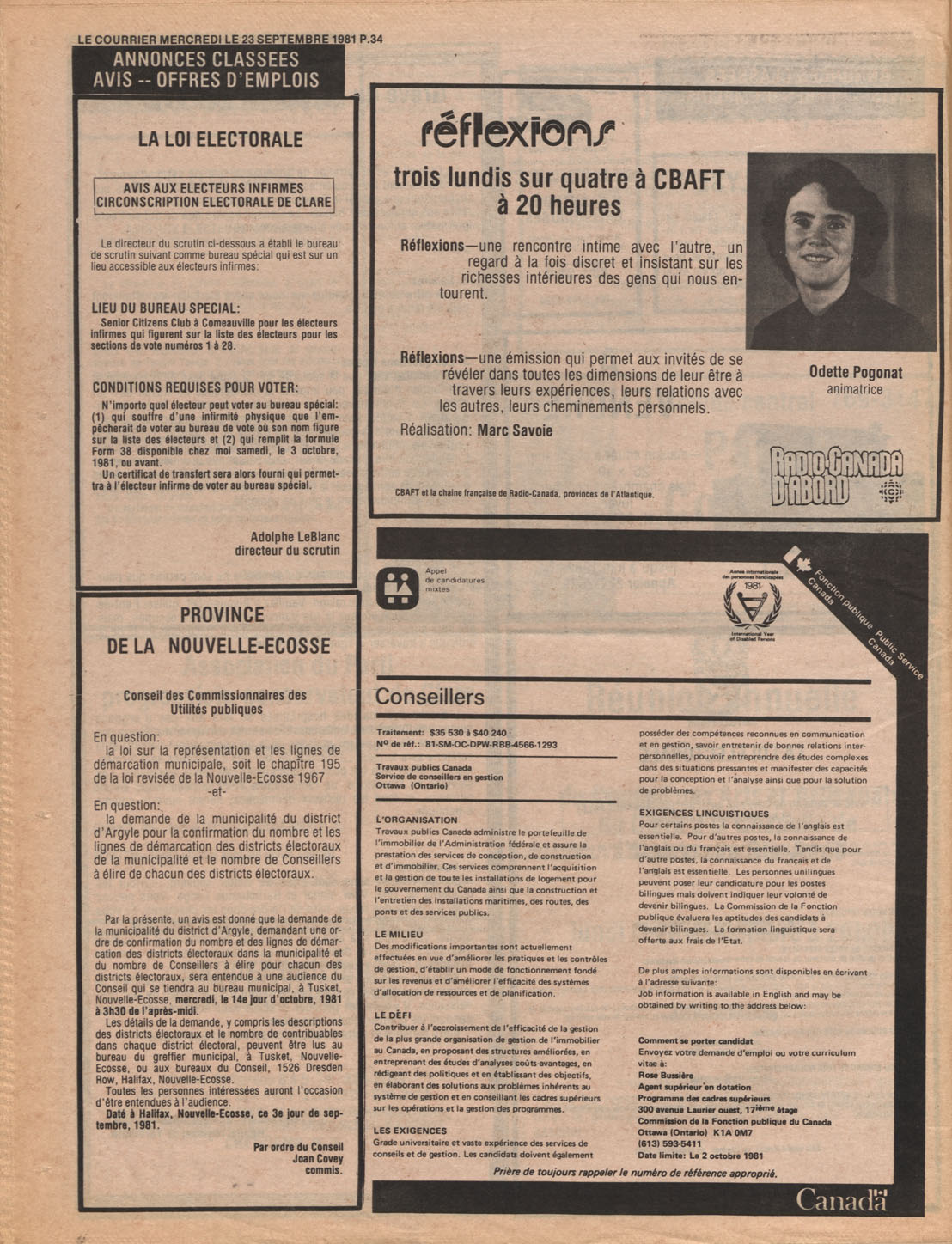 Le Courrier is Nova Scotia's leading French-language newspaper, and the only one with province-wide coverage and distribution. First published by Désiré d'Éon as Le Petit Courrier (Du Sud-Ouest de la Nouvelle-Écosse) on 10 February 1937, it has appeared weekly ever since, informing its readers, defending the interests of Acadians and francophones, and providing a bridge linking all Acadian regions in the province. It offers community news and events, extended articles, advertisements, announcements, photographs and special supplements, all directed towards supporting Nova Scotia's large, dispersed and diversified Acadian population, its businesses, industries, economy, daily activities, schools and higher education, politics, cultural life and heritage. Le Courrier offers an outstanding and unparalleled perspective on 66 years' accumulated history of Nova Scotia's Acadian population, thus enabling exploration of interests, activities, accomplishments, concerns and community issues across a broad swath of the 20th century.