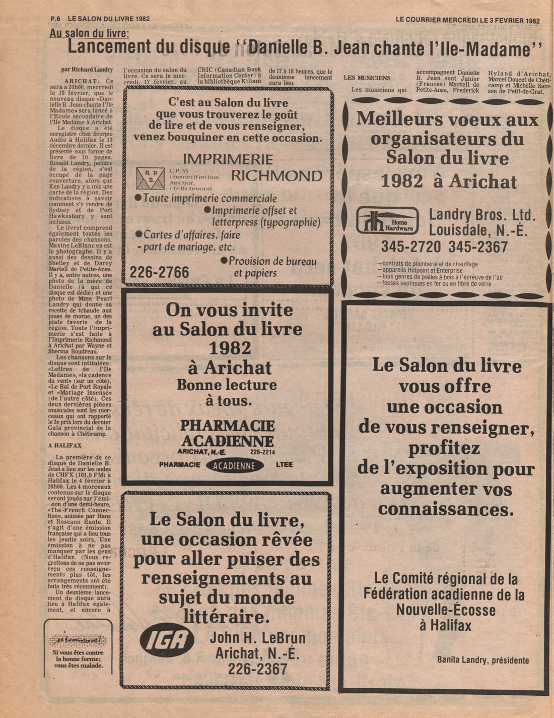 Le Courrier is Nova Scotia's leading French-language newspaper, and the only one with province-wide coverage and distribution. First published by Désiré d'Éon as Le Petit Courrier (Du Sud-Ouest de la Nouvelle-Écosse) on 10 February 1937, it has appeared weekly ever since, informing its readers, defending the interests of Acadians and francophones, and providing a bridge linking all Acadian regions in the province. It offers community news and events, extended articles, advertisements, announcements, photographs and special supplements, all directed towards supporting Nova Scotia's large, dispersed and diversified Acadian population, its businesses, industries, economy, daily activities, schools and higher education, politics, cultural life and heritage. Le Courrier offers an outstanding and unparalleled perspective on 66 years' accumulated history of Nova Scotia's Acadian population, thus enabling exploration of interests, activities, accomplishments, concerns and community issues across a broad swath of the 20th century.